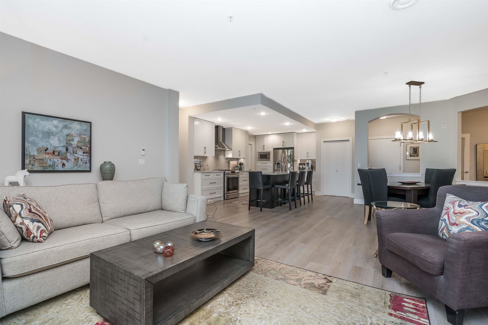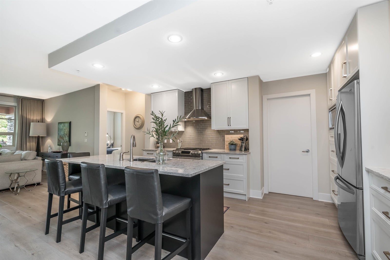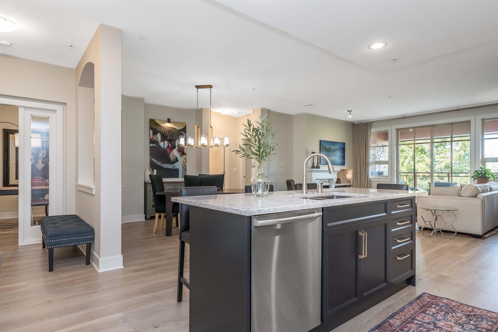Wow, shows Immaculate. Move right in! Beautifully renovated, bright & spacious 2bed/2bath + den unit featuring an open floor plan. Unbelievably quiet. Gorgeous renovated kitchen with breakfast bar featuring granite countertops, stainless steel appliances, and plenty of pantry storage. Newly painted, renovated bathrooms & new carpet in bedrooms. Unit features open dining area, gas fireplace, and a spacious patio! Peek-a-boo Golf course & mountain views. Large balcony. Building features include resort atmosphere with a clubhouse, pool & hot tub, gym, guests suites and much more. 2 parking stalls side by side in the parkade. Don't miss out on this incredible opportunity, call today! Very desirable St. Andrews complex.